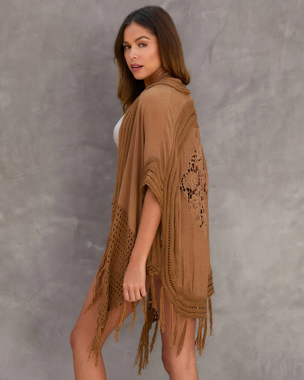 Madrid Cotton Knit Crochet Fringe Kimono