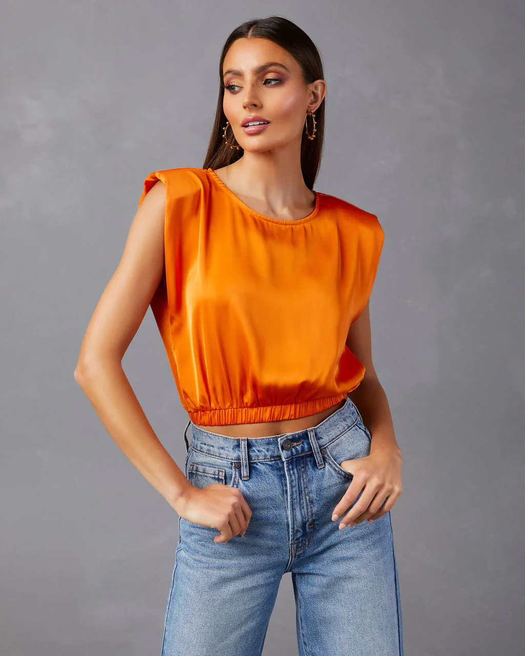 Nasima Satin Padded Shoulder Crop Top