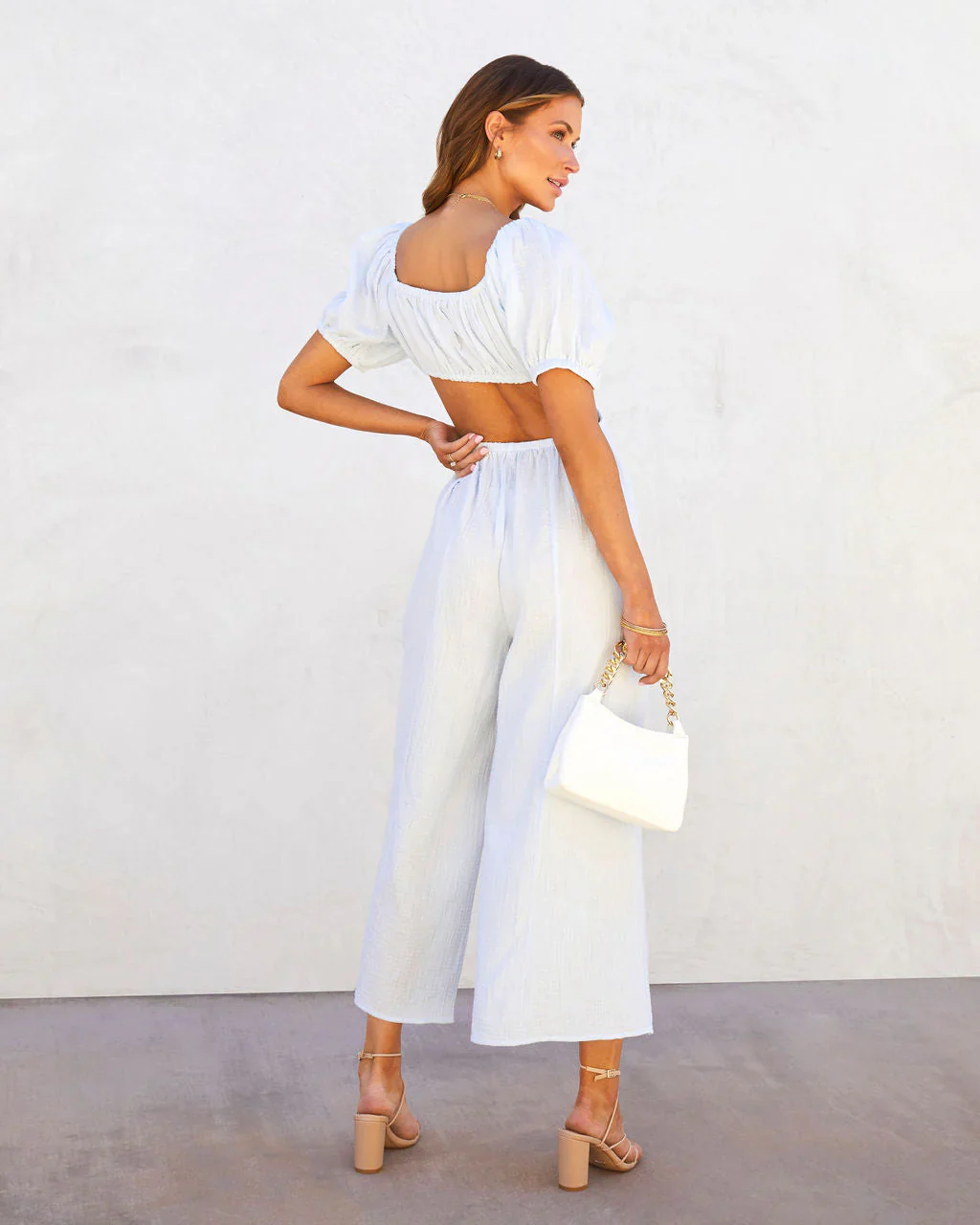 Portofino Breeze Cotton Puff Sleeve Cutout Jumpsuit