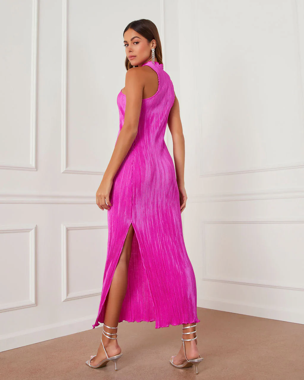 Disco Fever Shimmer Halter Cowl Neck Maxi Dress