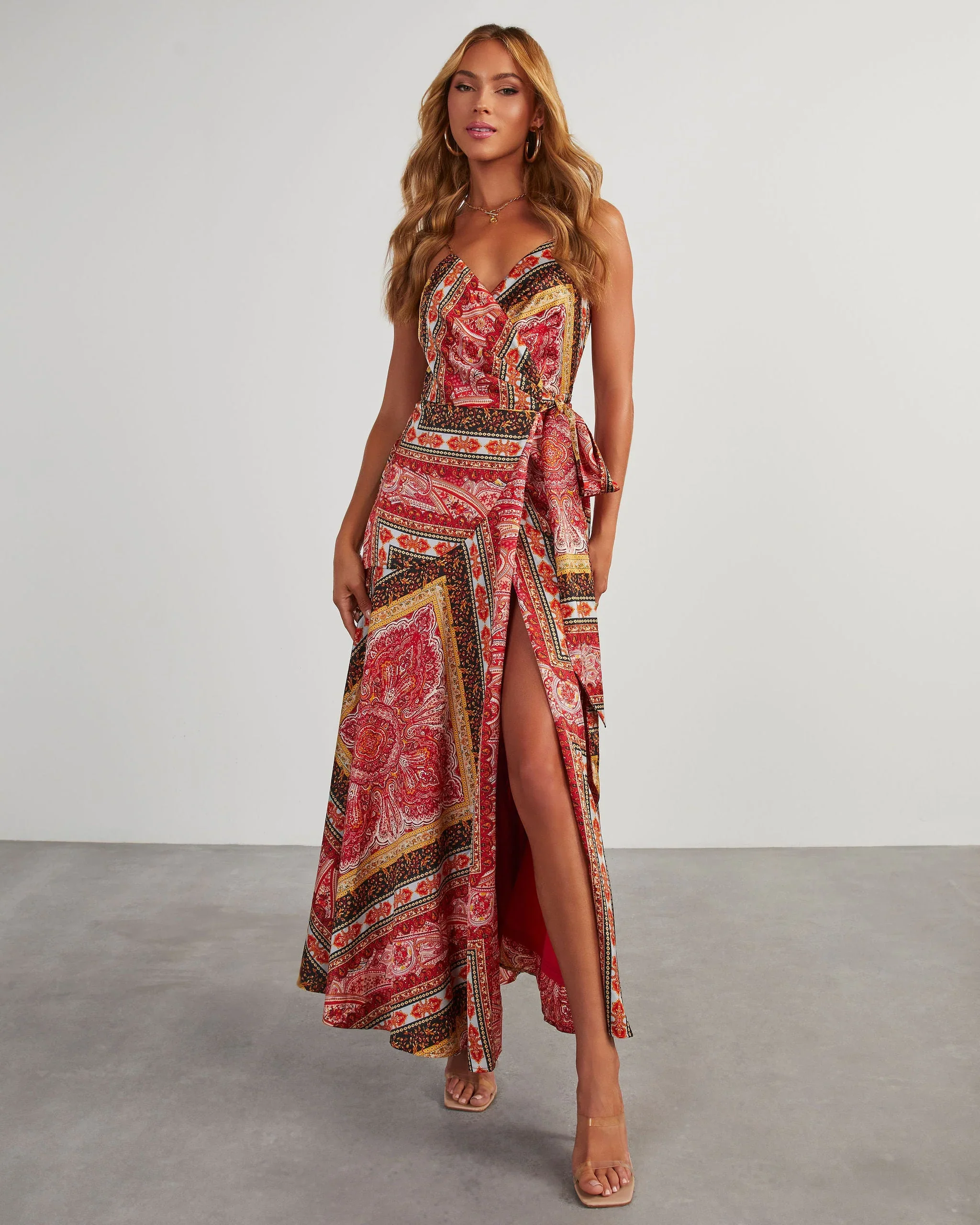 Jazz It Up Satin Printed Wrap Maxi Dress