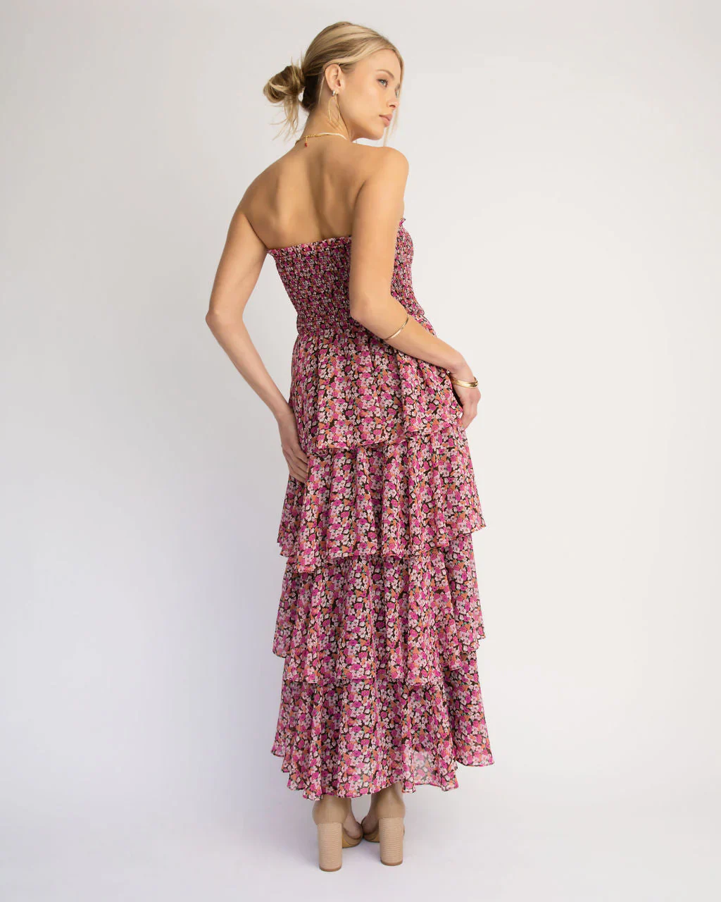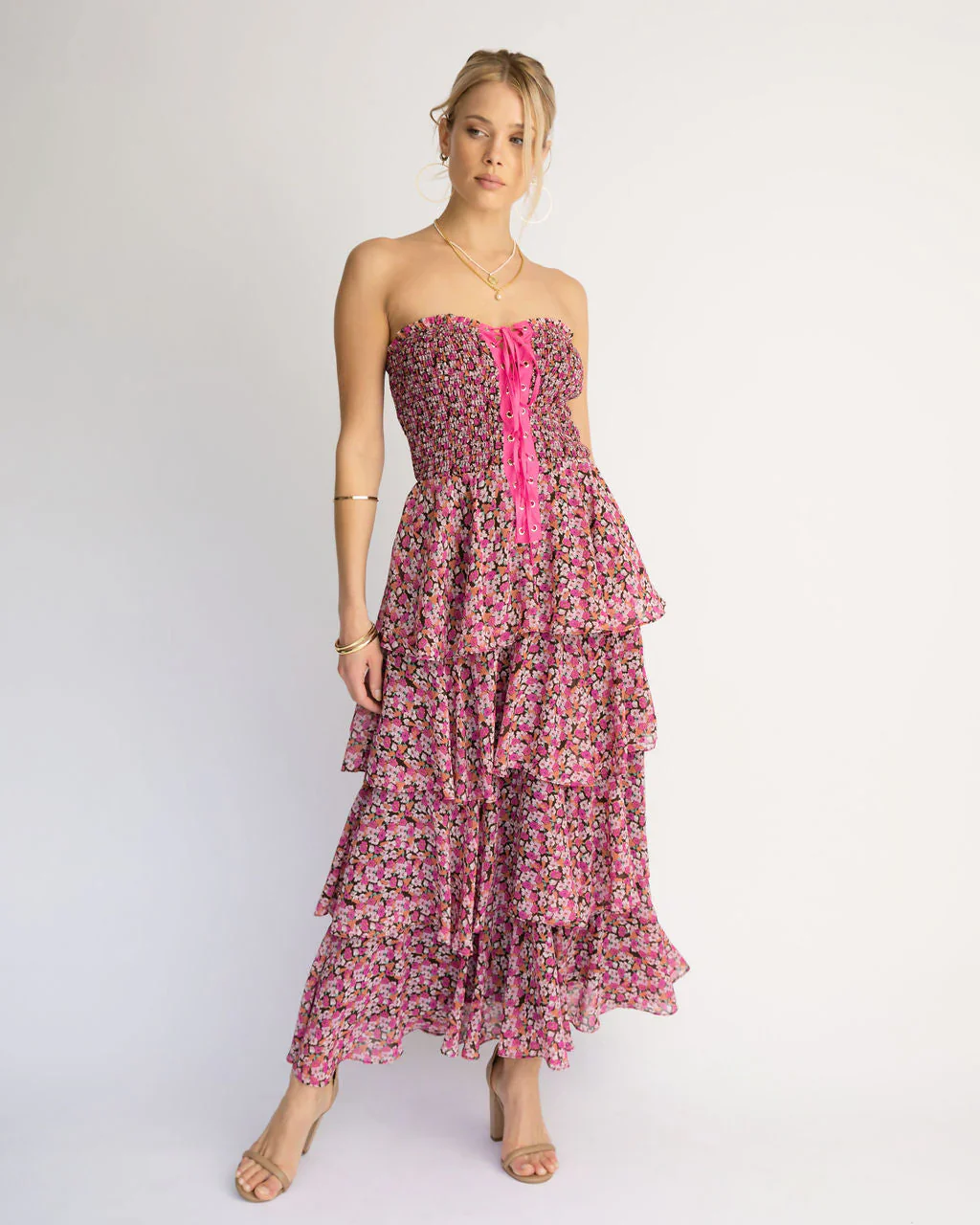 La Vida Strapless Corset Floral Tiered Midi Dress