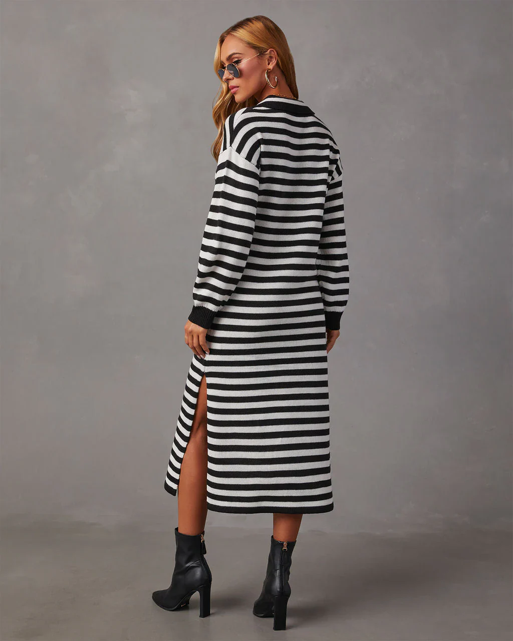 Pasqual Striped Collared Knit Midi Dress