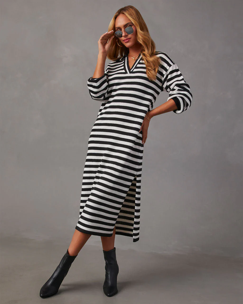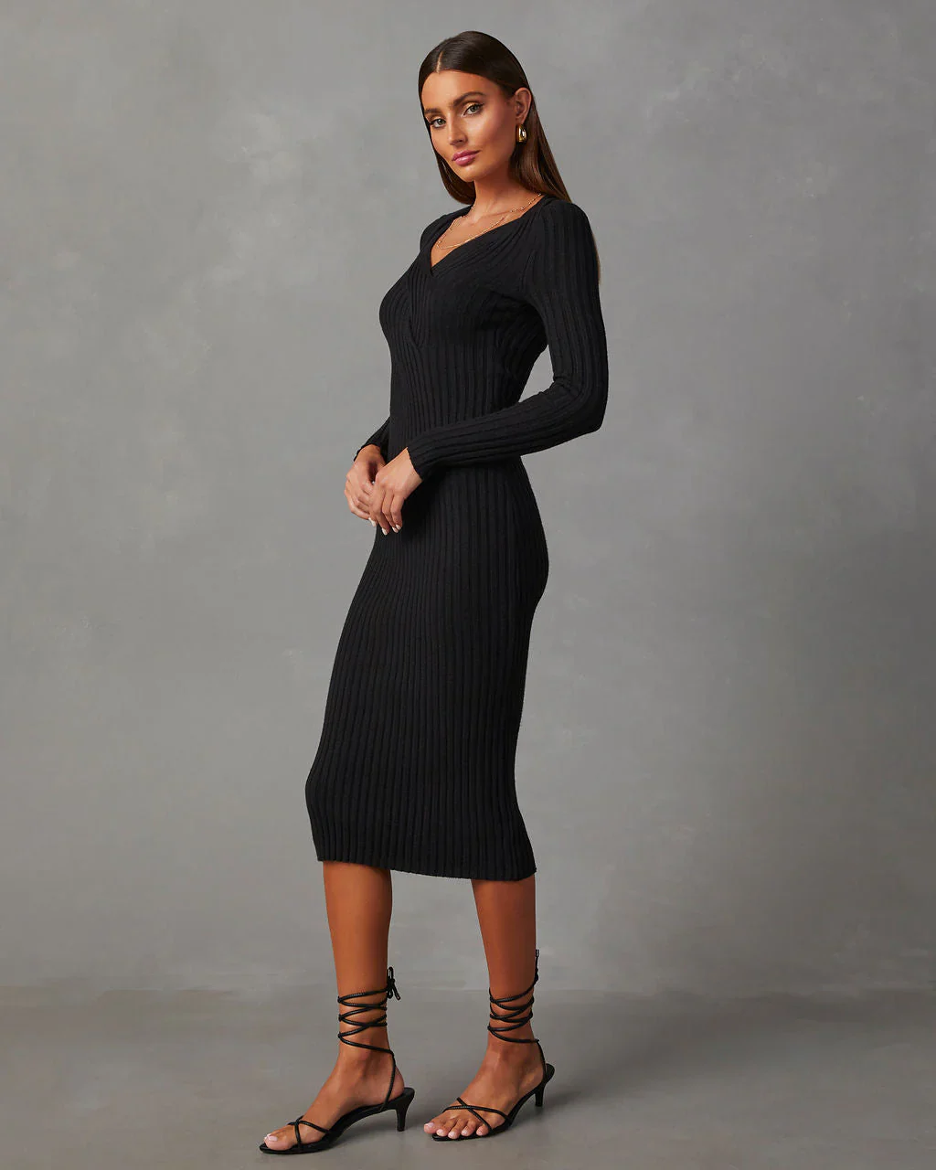 My Sweet Time V-Neck Midi Sweater Dress