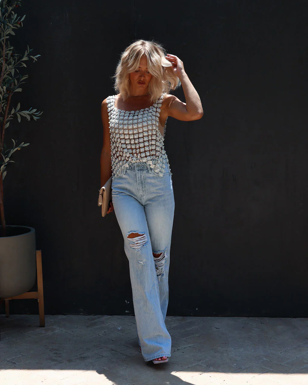 Lizzie Flower Pearl Embellished Top
