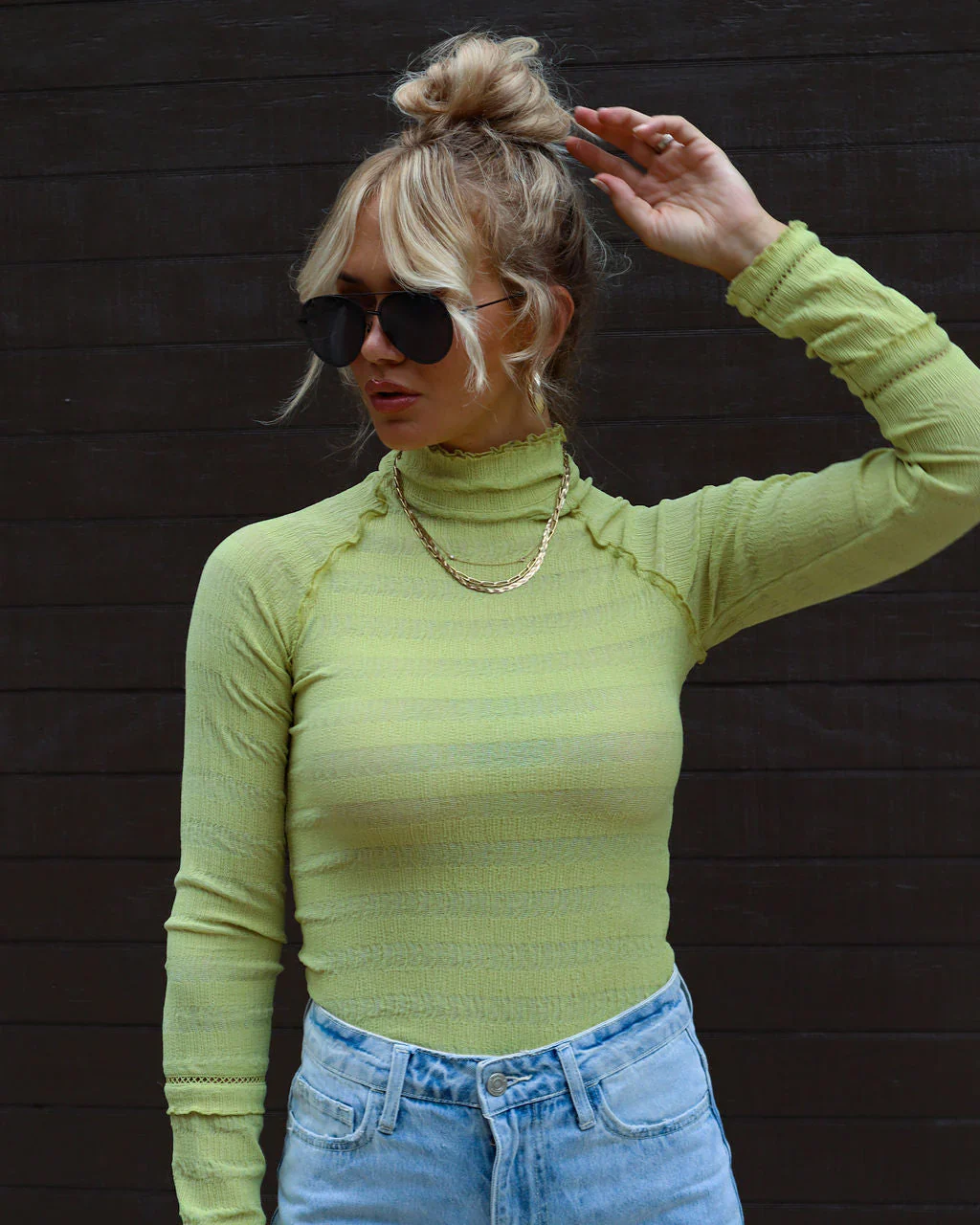 Coban Mesh Mock Neck Long Sleeve Top