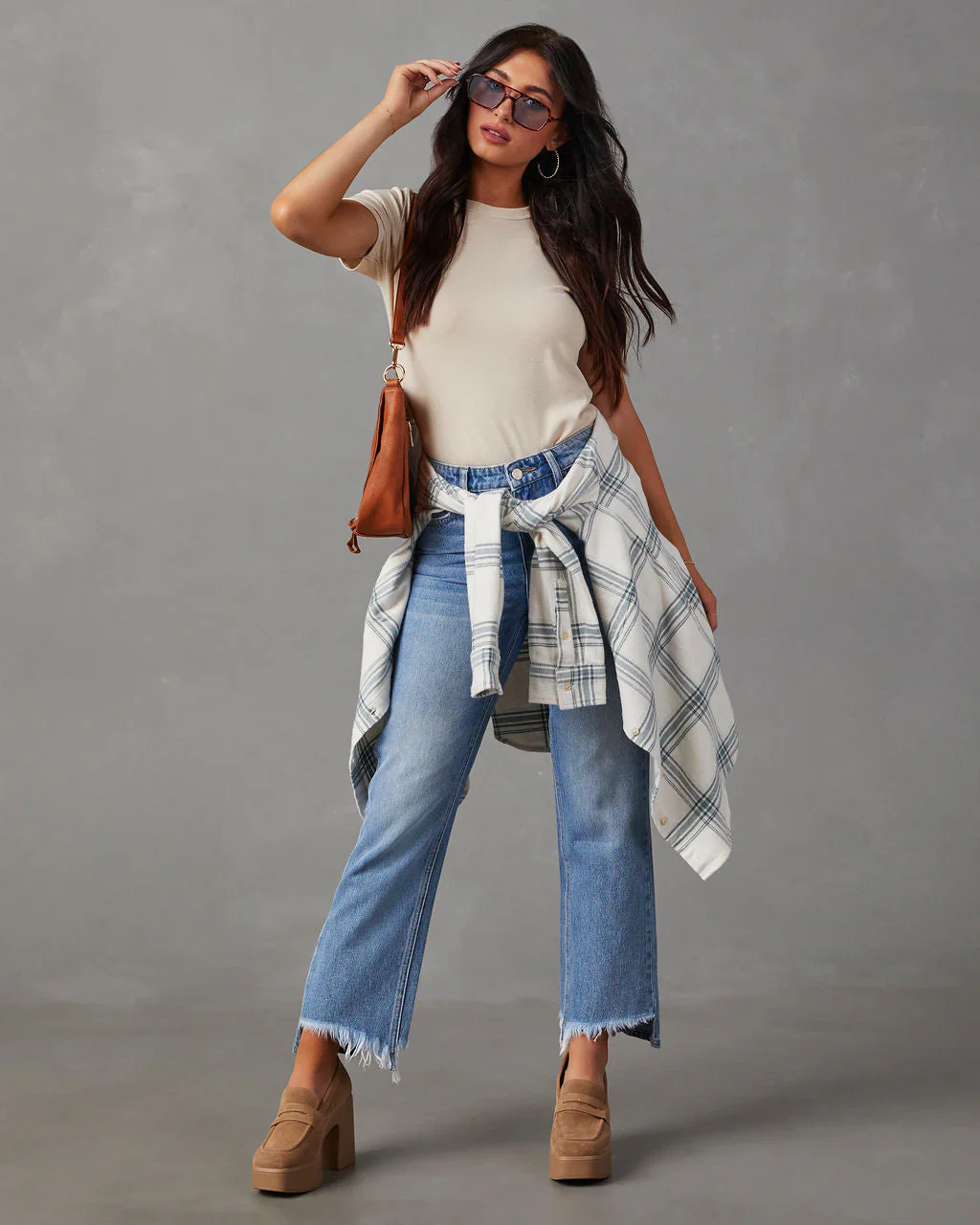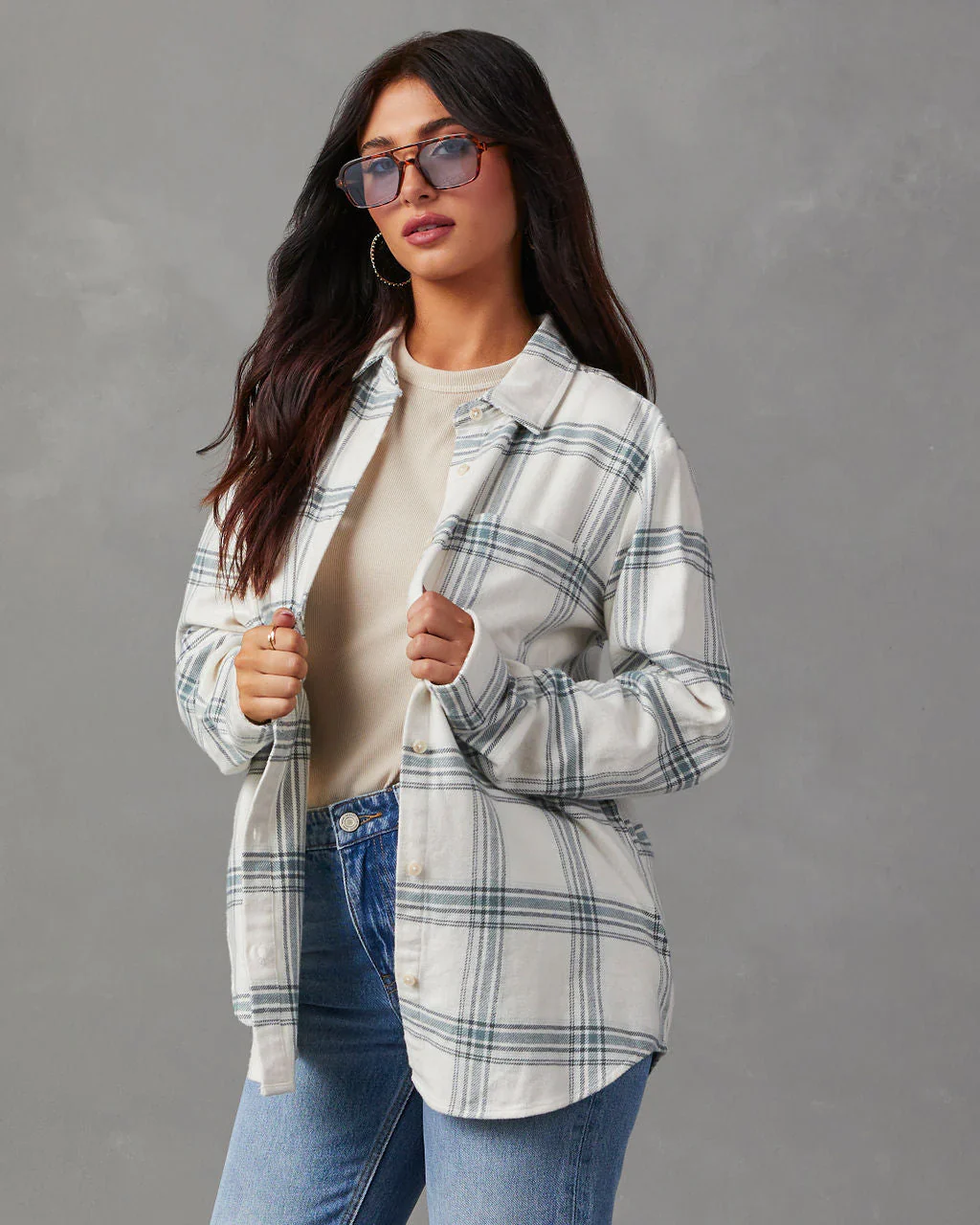 Ciera Oversized Cotton Plaid Button Down Top