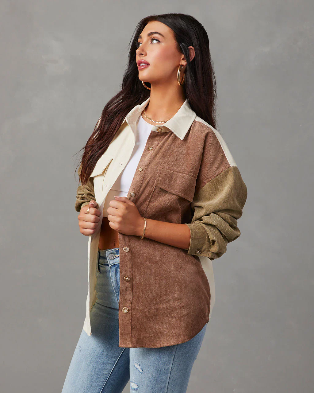 Connolly Corduroy Colorblock Button Down Top