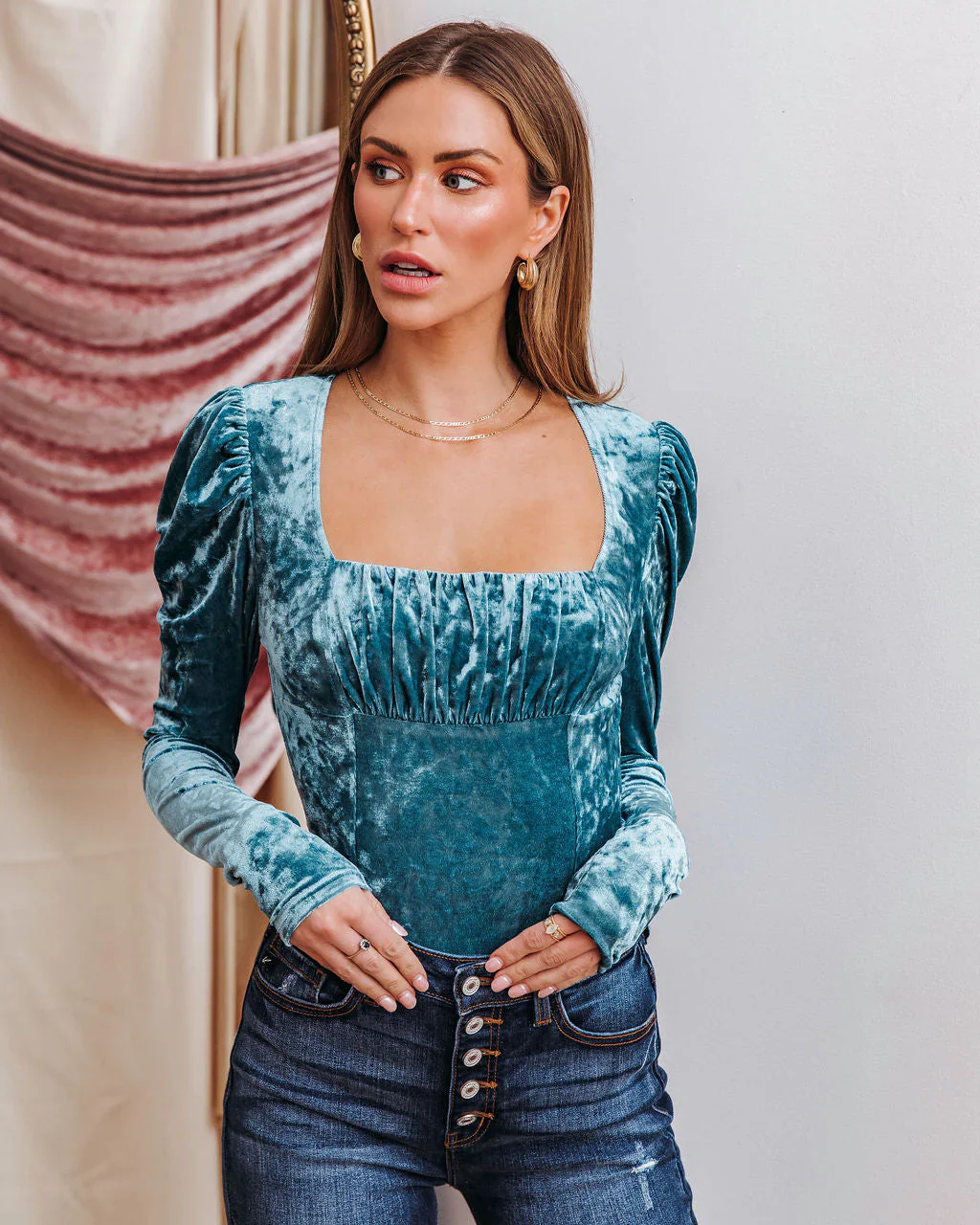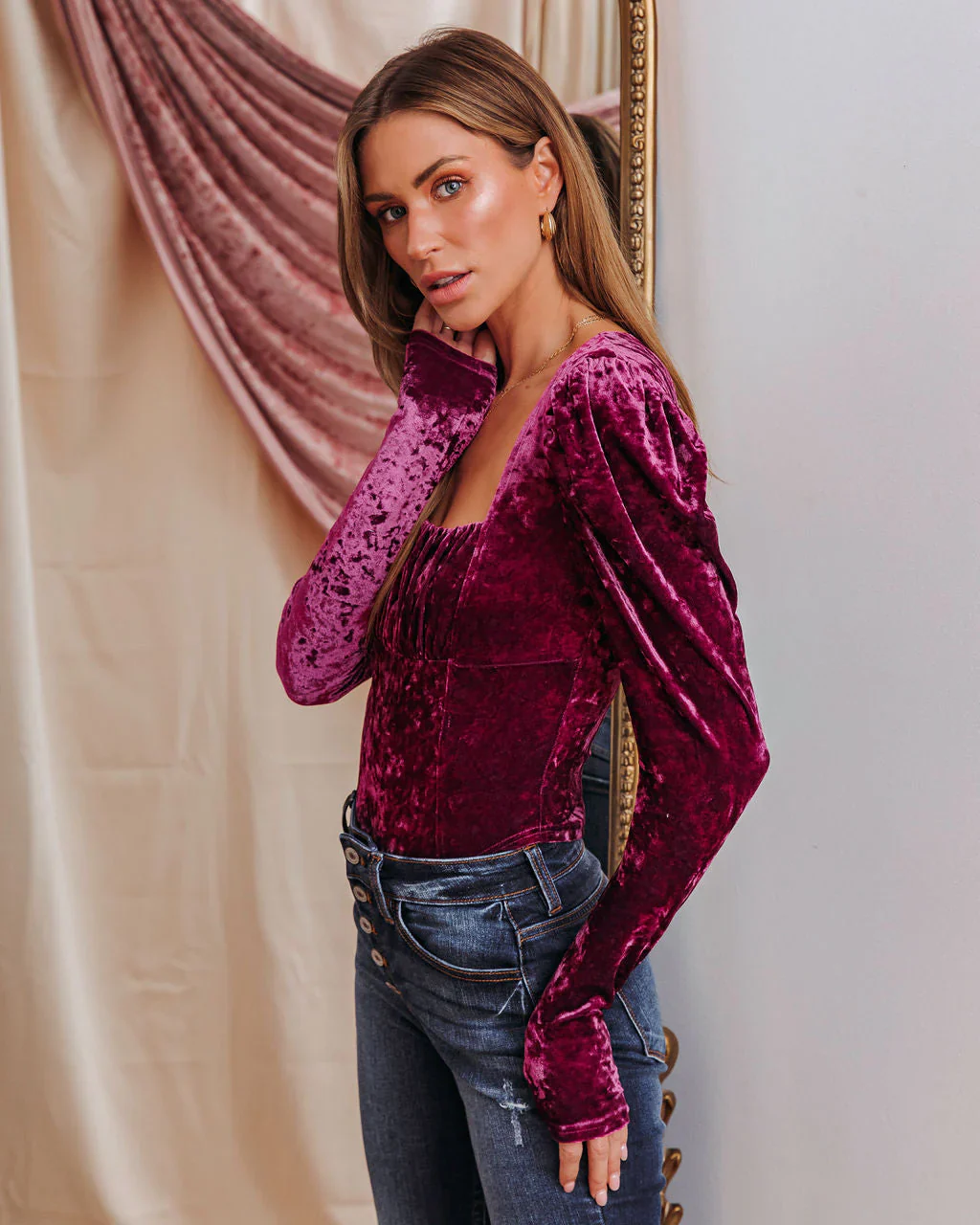 Dina Velvet Puff Sleeve Top