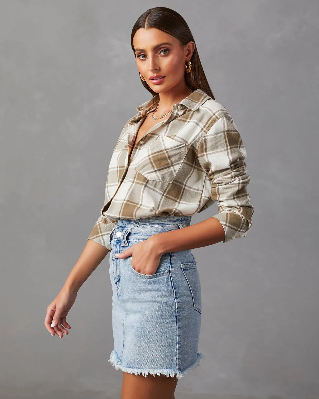 Delbert Oversized Plaid Button Down Top