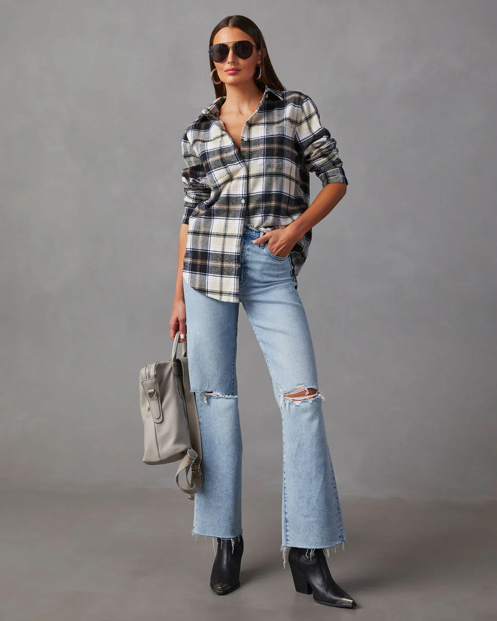 Guthrie Oversized Plaid Button Down Top